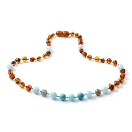 Amber Necklace Cognac, Labradorite, Aquamarine, Turquoise and Amazonite | Teen/Adult 45cm