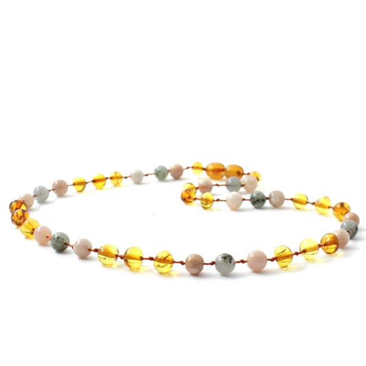 Amber Necklace Honey, Labradorite & Sunstone | Baby 32cm
