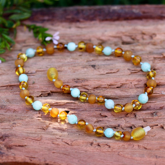 Amber Necklace Honey Polished & RAW, Amazonite | Baby 32cm