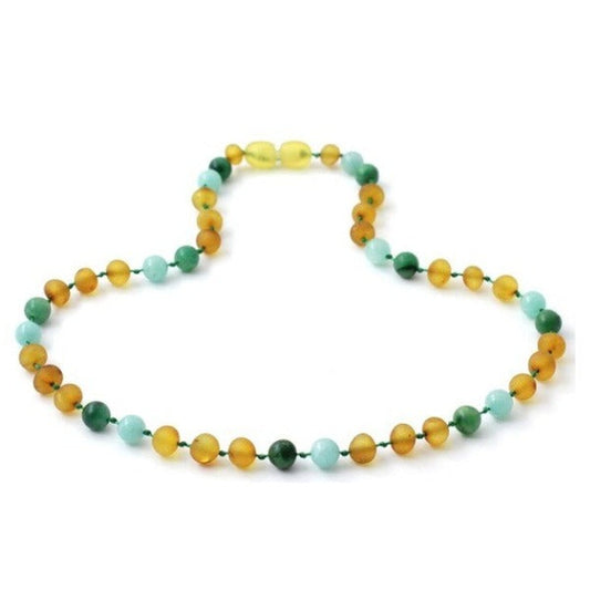 Amber Necklace Honey Raw, Amazonite & African Jade | Baby 32cm