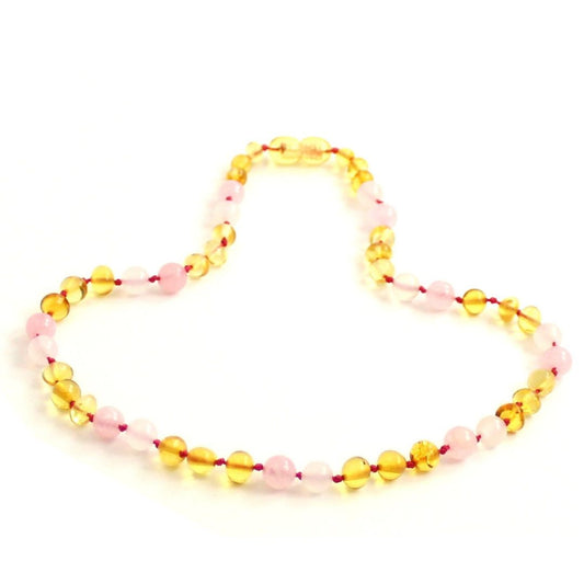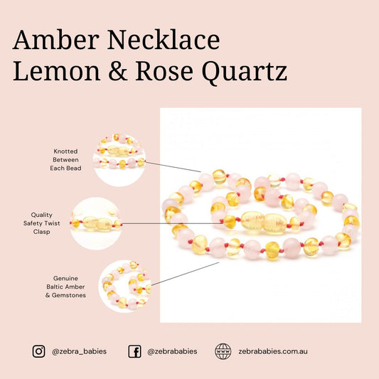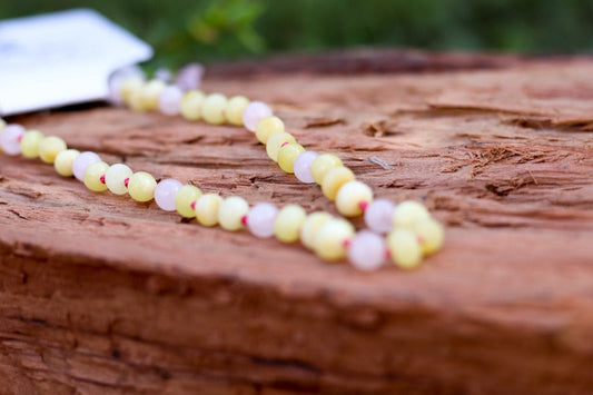 Amber Necklace Lemon & Rose Quartz | Baby 32cm