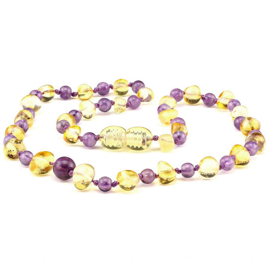 Amber Necklace Lemon & Amethyst | Baby 32cm