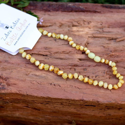 Our amber necklaces are handmade in Lithuania, the home of authentic Baltic Amber. Known for their natural soothing properties, these genuine amber necklaces help ease teething discomfort while looking beautiful on your little one. Lightweight and comfortable to wear, each necklace is crafted from genuine Baltic Amber beads – a trusted natural choice for centuries