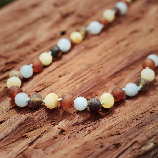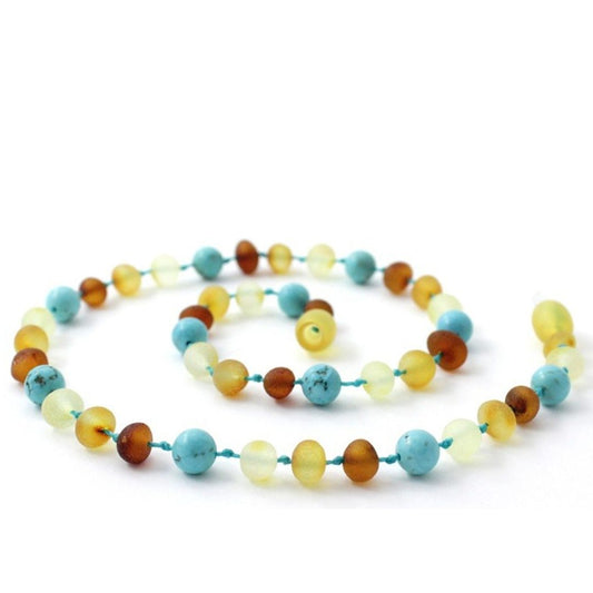 Amber Necklace Multi Raw & Turquoise | Baby 32cm